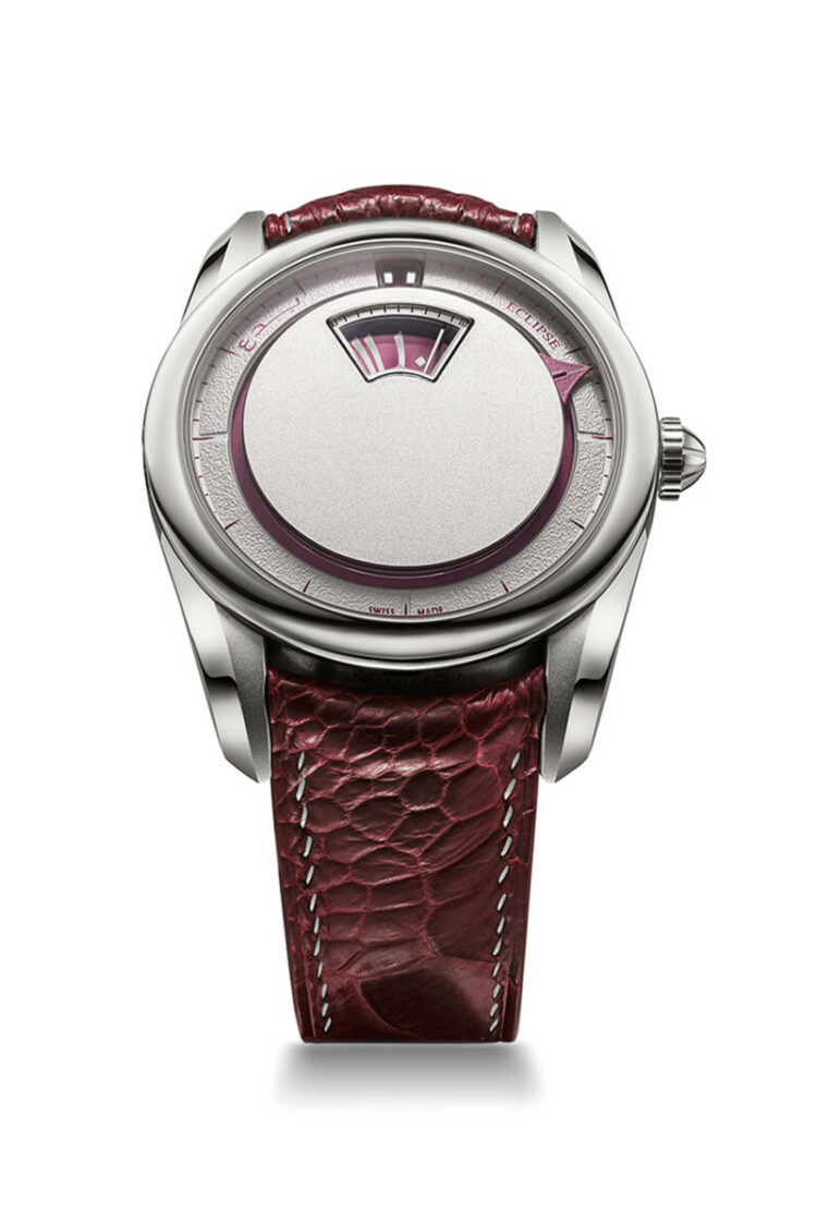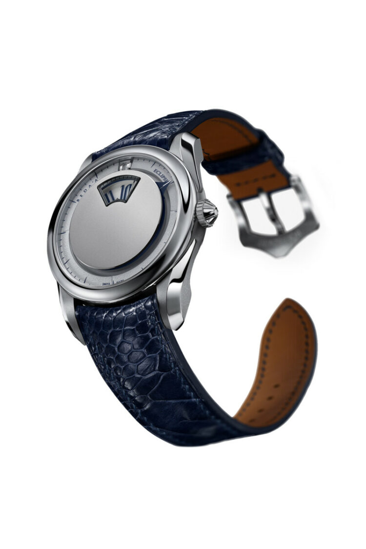 The Eclipse collection is built around an unconventional way of reading time. No traditional hands, no central axis doing all the work. Instead, the dial is layered, with hours displayed through a sweeping aperture, minutes floating independently, and a subtle ten second indicator adding movement without stress. It is modern, but not aggressive. Conceptual, but still wearable. That balance is hard to achieve, and it is why Eclipse feels like the backbone of the brand.