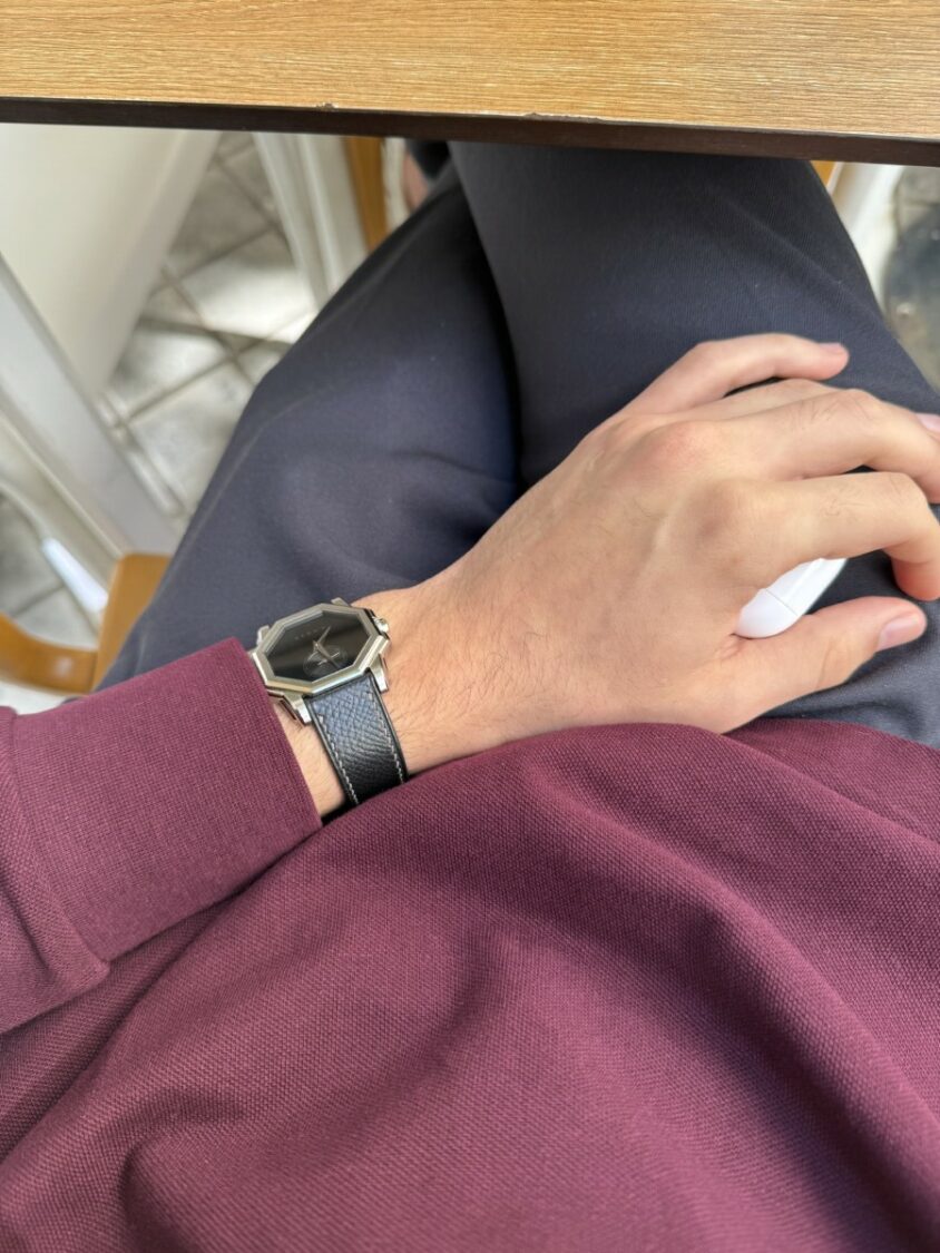 I’ve worn my Angles Meca Line on casual coffee runs, in boardrooms, at life changing dinners that ended way too late, and especially during early morning writing sessions like this one. The Meca Line— hand wound (ETA 7001), 37mm x 34mm and 6mm in thickness, doesn’t feel like a piece I rotate into my collection; it feels like my watch. A signature. A partner-in-crime.